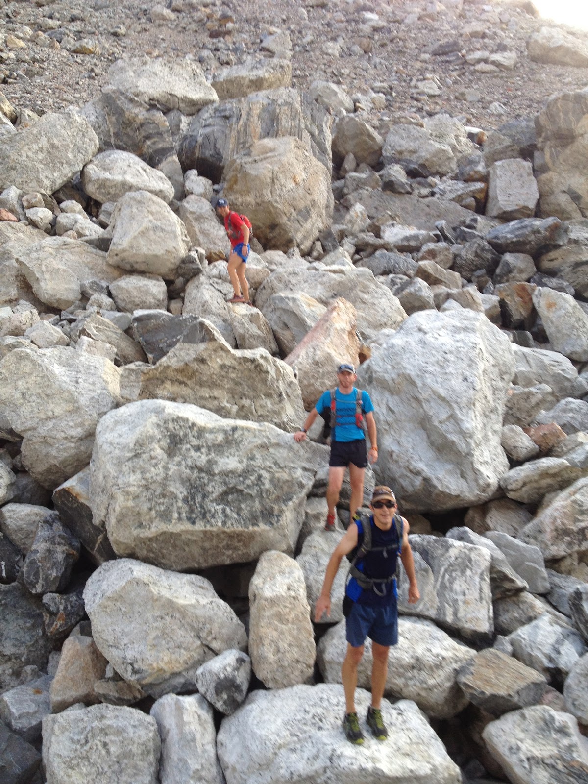 Chris Kroger had other obligations so he didn’t go on with us, but Ty, Mike and I headed out to run the Circumnavigation loop clockwise. We ran into the heat of the day and it started to take it’s toll about 3 hours in. All of us were feeling the effort starting to pile up and there were some epic low spots experienced on the way up towards Alaska Basin. We patched ourselves back together and continued to move forward. By the time we finished the Circumnavigation we had been on the trail for a total of almost 15 hours and certainly felt like we had gotten out money’s worth. The second leg of the trip I consumed 3 liters of water, 2-10 oz slurry flasks, 1 EFS flask and two more wraps, about 2460 calories.